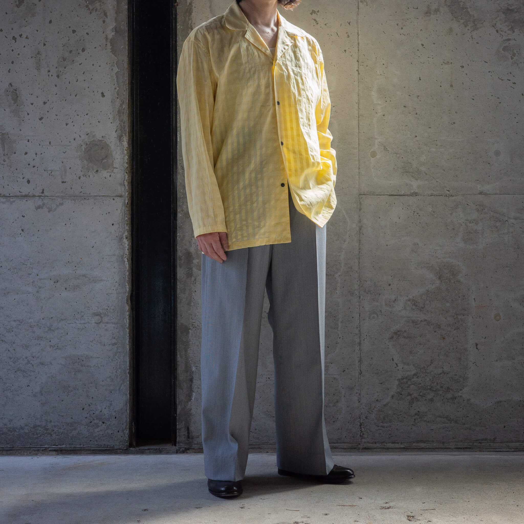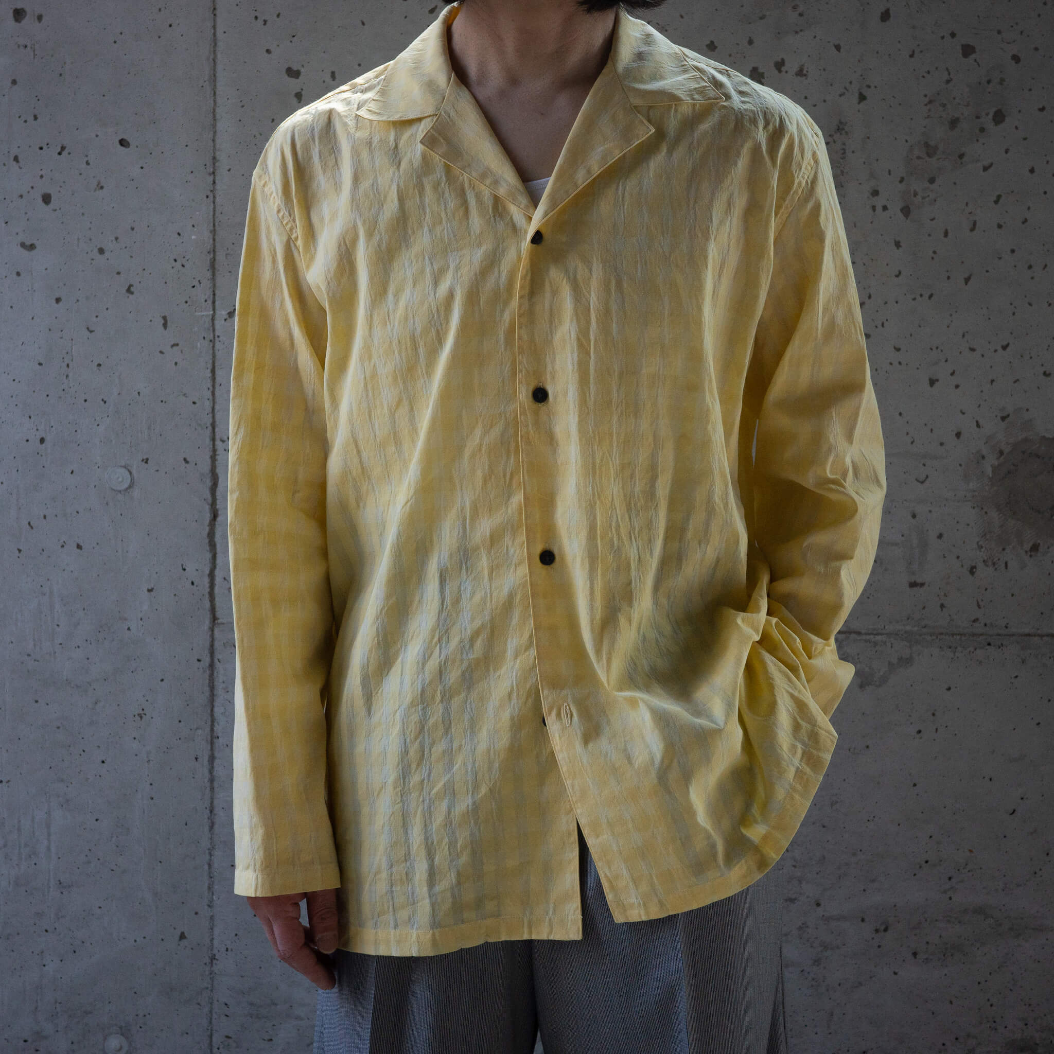生地そのものに清涼感があり、デザイン性も十分。気温の高い夏場でも、Tシャツやタンクトップの上からさらっと羽織るだけでスタイルが決まる、イージーさも魅力です。