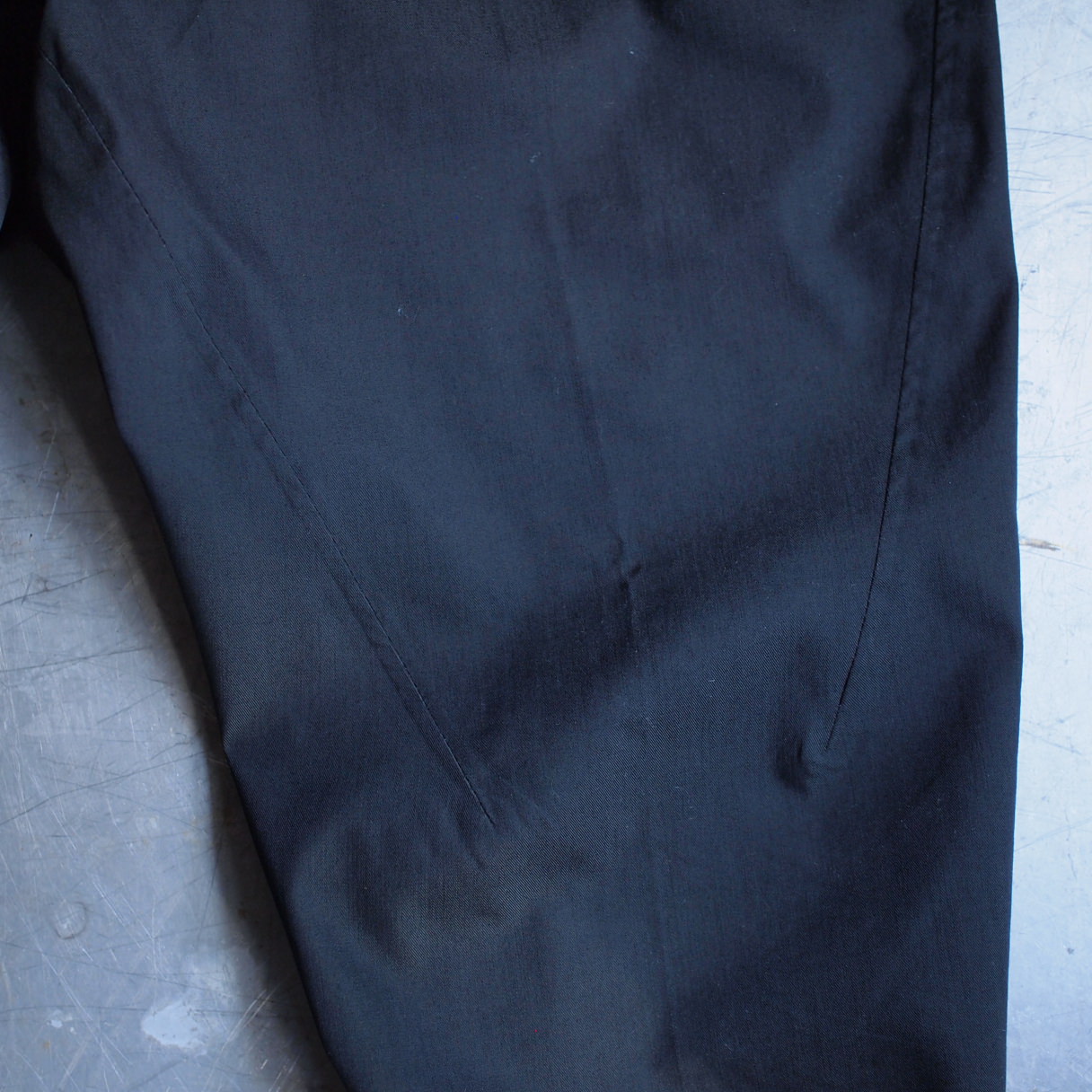 膝正面のカッティング。ステッチが途中で終わっているのがわかるでしょうか。