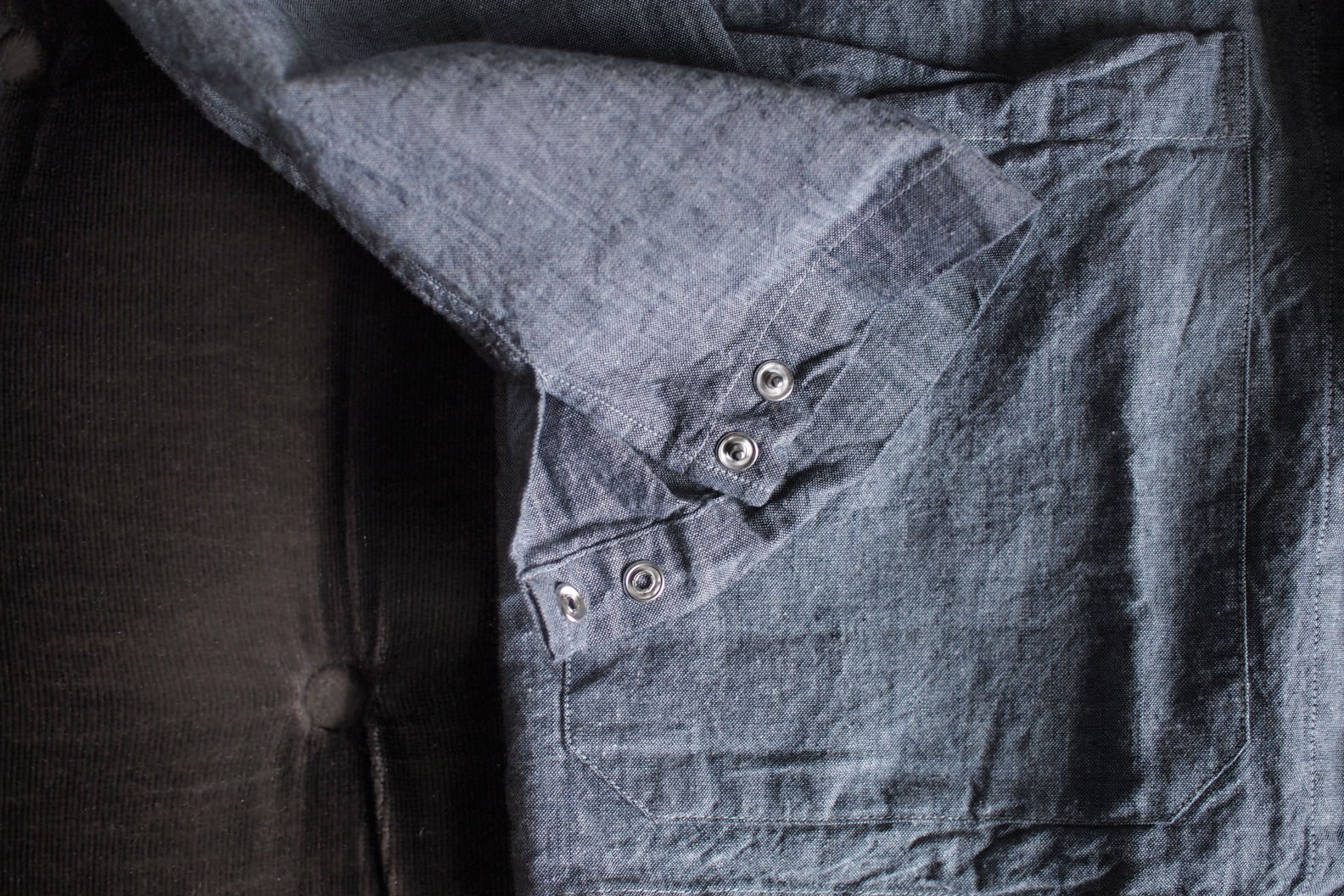 カフスのボタンは、上腕部分についたスナップボタンに留めることも可能です。