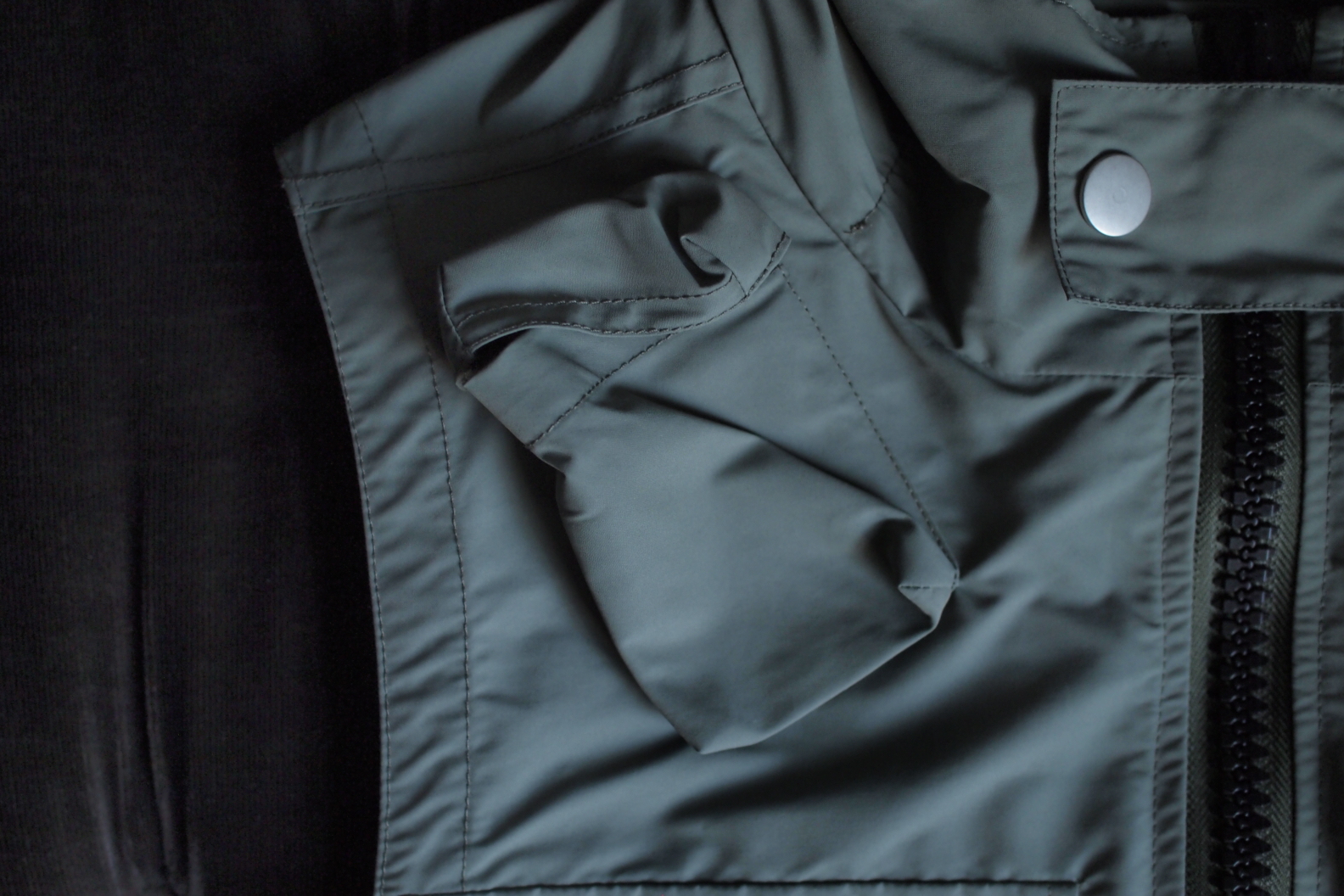 ギアとしての機能に特化したベストだけに、背面は生地面積を減らし、ポケットだけが付く仕様に。