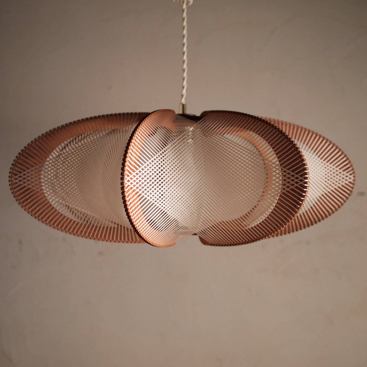当店は糸の掛け方をQADROでオーダー。中心部分に糸の交差が集中し、ライトの光がぼんやりと浮かぶデザインを選びました。