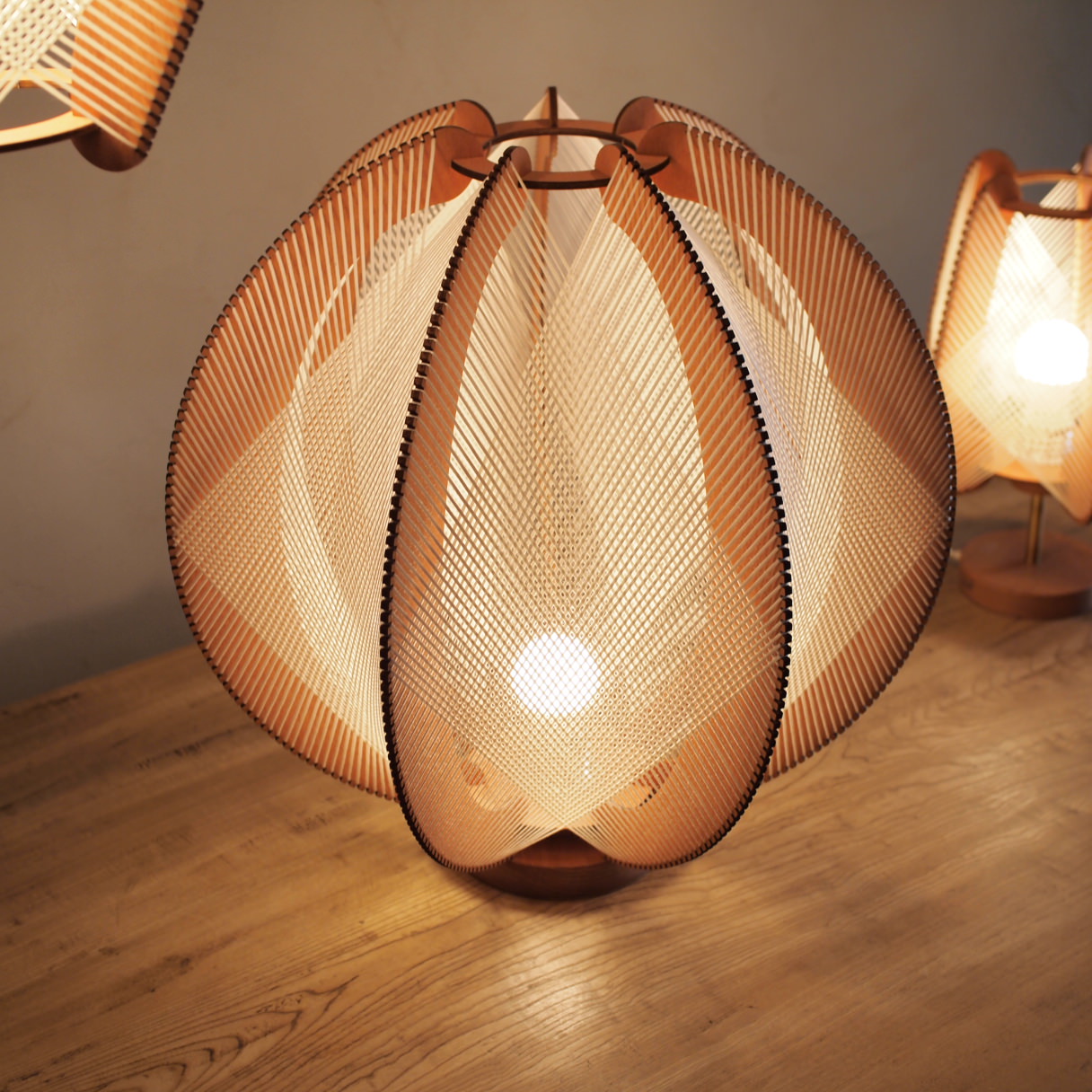 シェードの形は全部で5つ。スタイルは、ローベース、テーブルライト、ペンダントライトの3型。