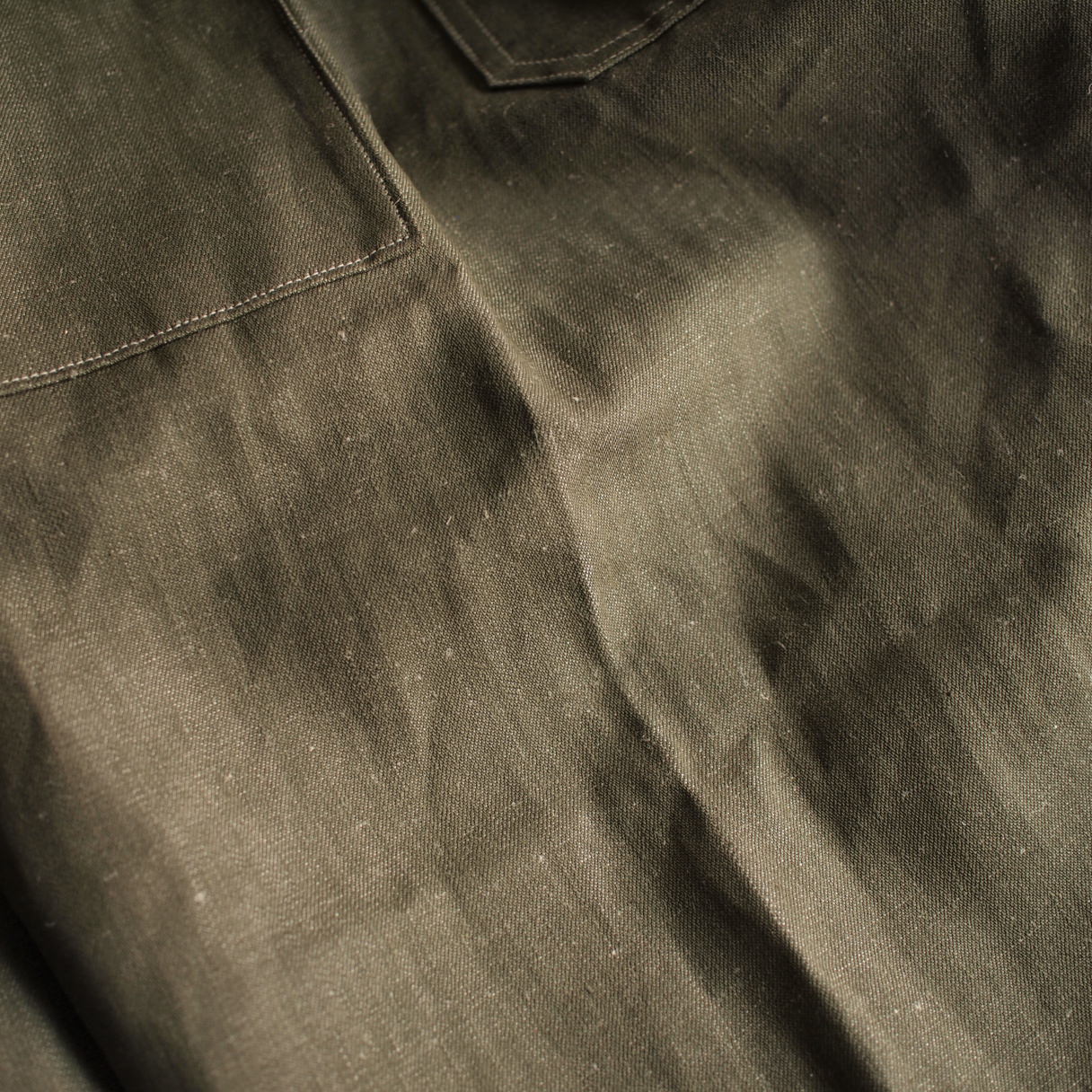 タテ糸にコットン、ヨコ糸にリネン(60/40)を使用した、オリジナルのリネンデニム。