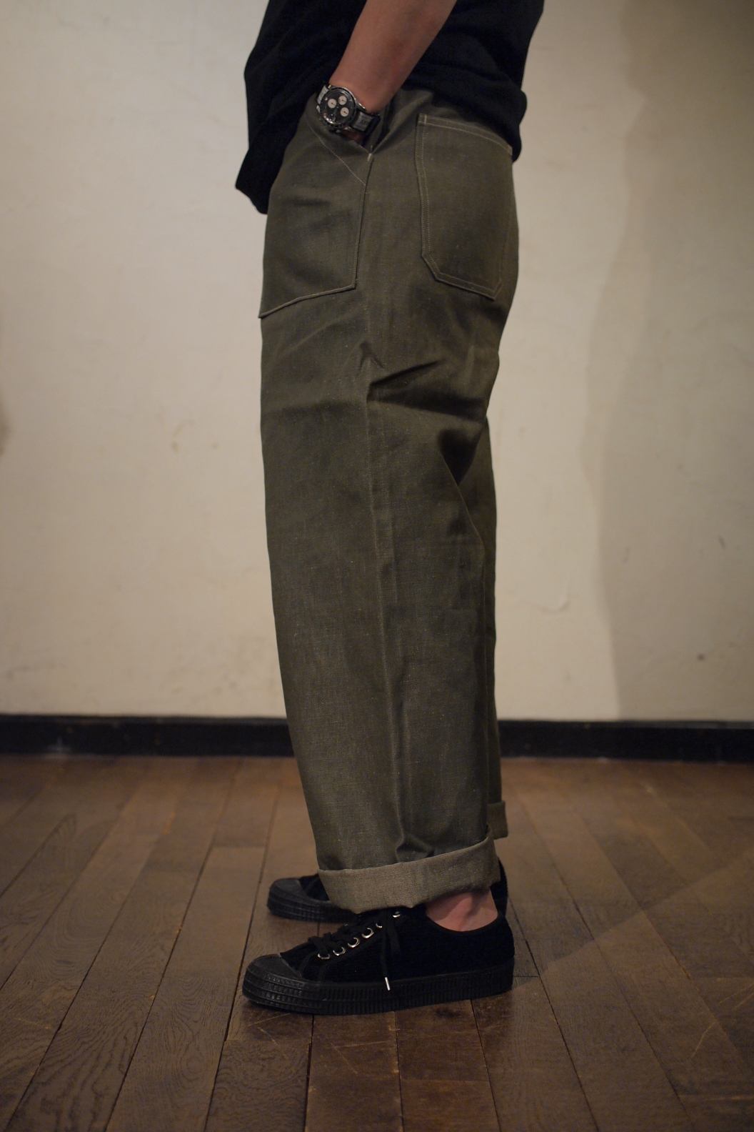 ベースとなった40s US NAVY デニムパンツ同様に、サイドはアウトシームが無い「巻き仕様」。Nigelらしいズドンとしたシルエットも◎です。
