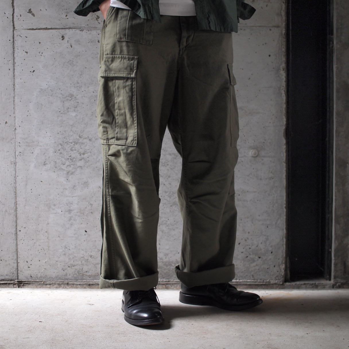 ファブリックも軍パンならではのバックサテンを使用。迫力のあるワイドシルエットと併せ、直球なデザインが魅力です。