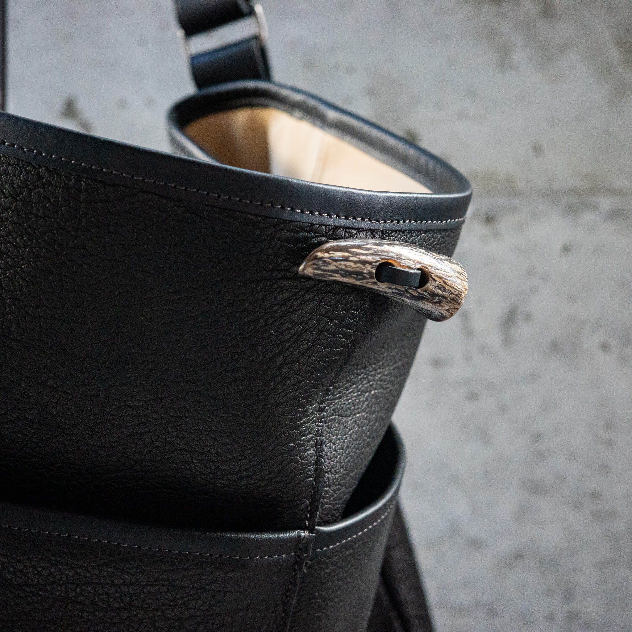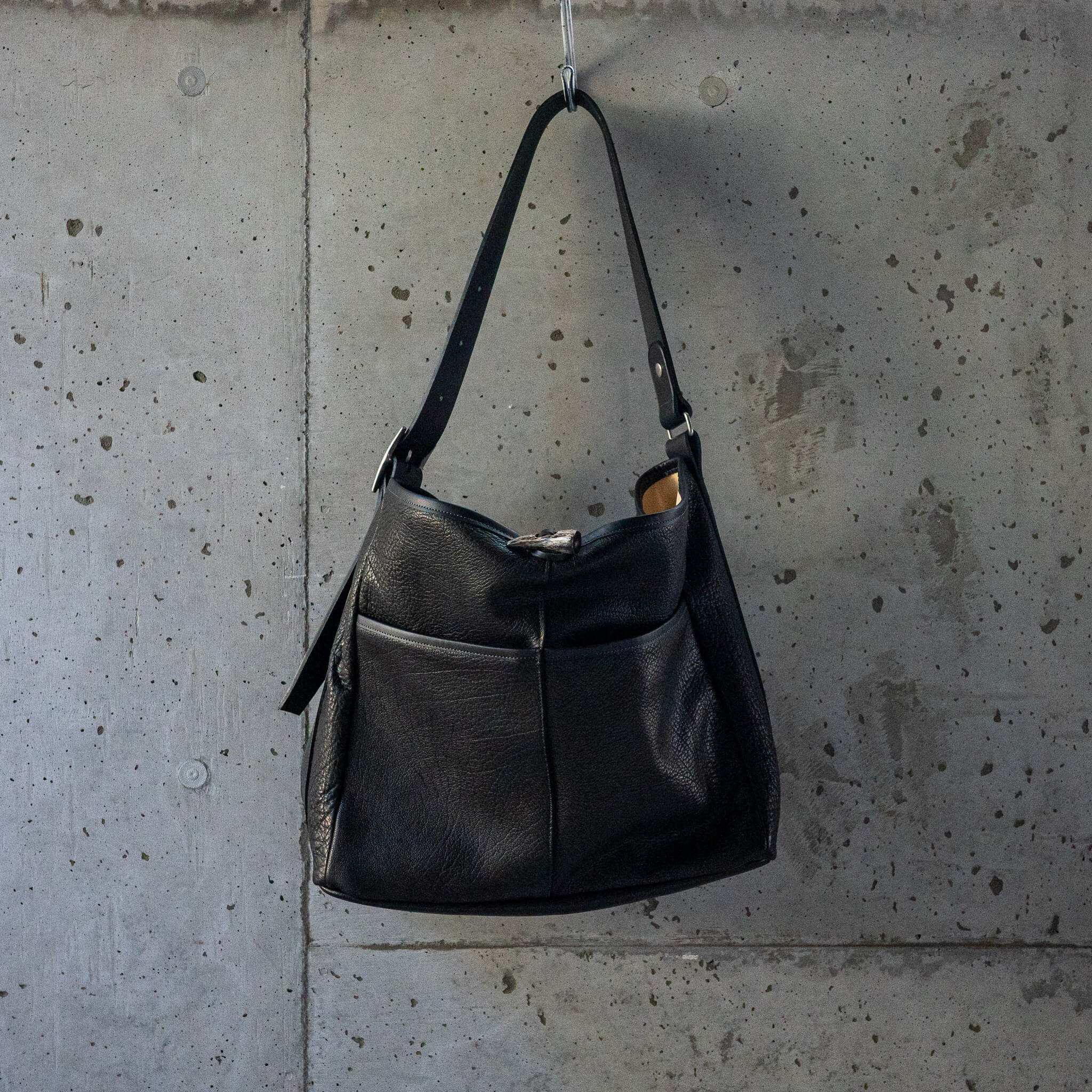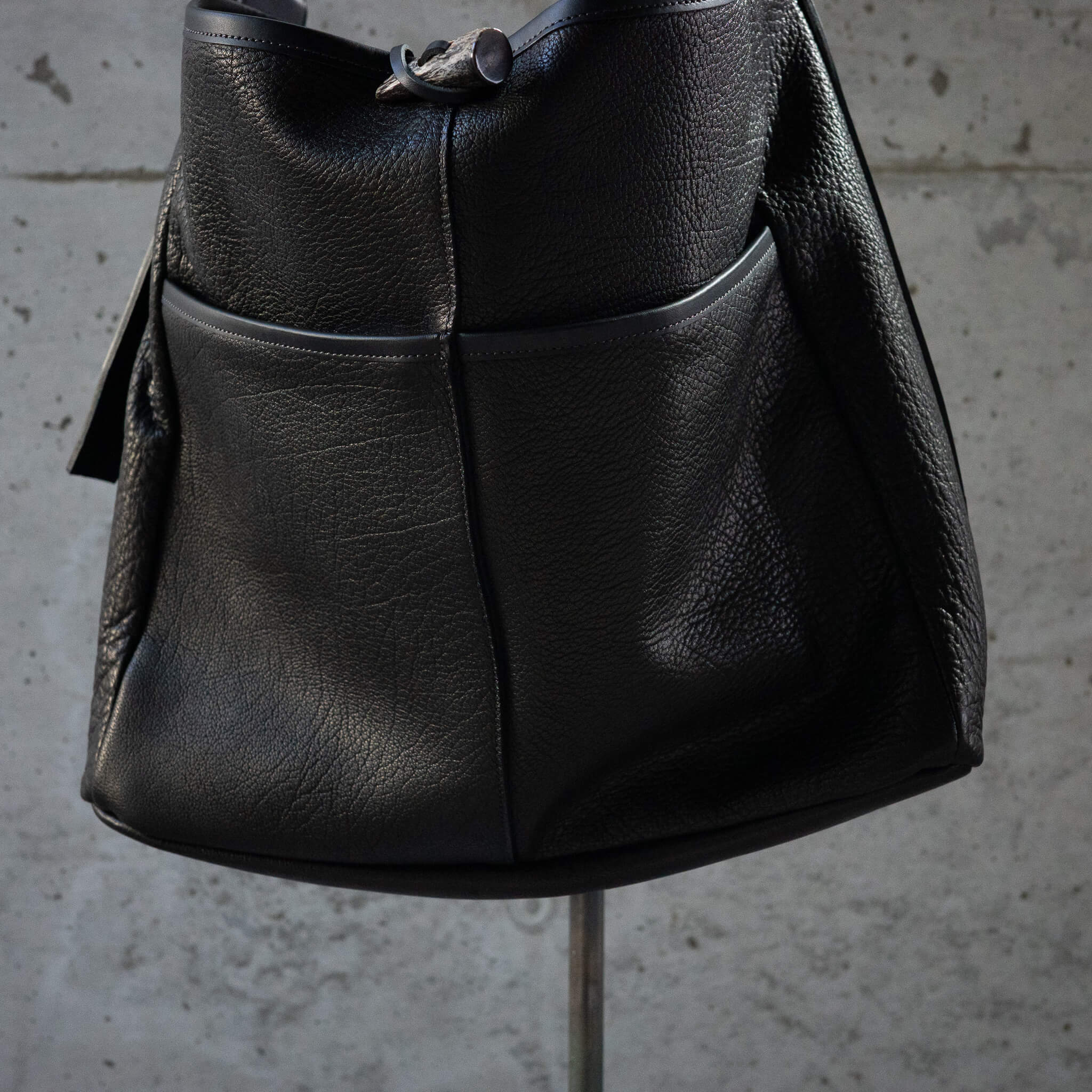 荒々しい表情を持つ、シボの強いバッファローレザーを使用した、ポストプロダクションの 2 Pocket Tote Bag