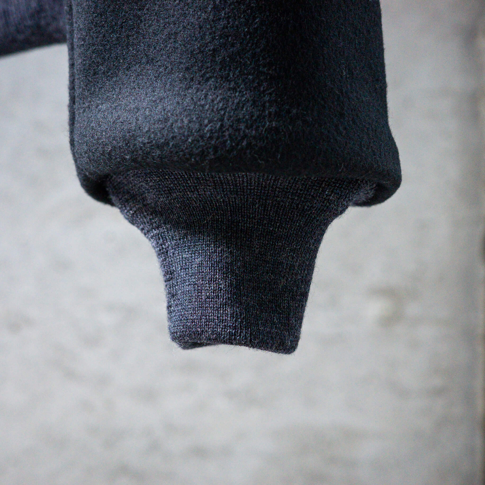 程よい収まりを生むよう編み変えられた腰回りのリブと、柔らかさを追求した丸編みの袖リブ。妥協を許さない当時の物作りに、快適さを加えています。