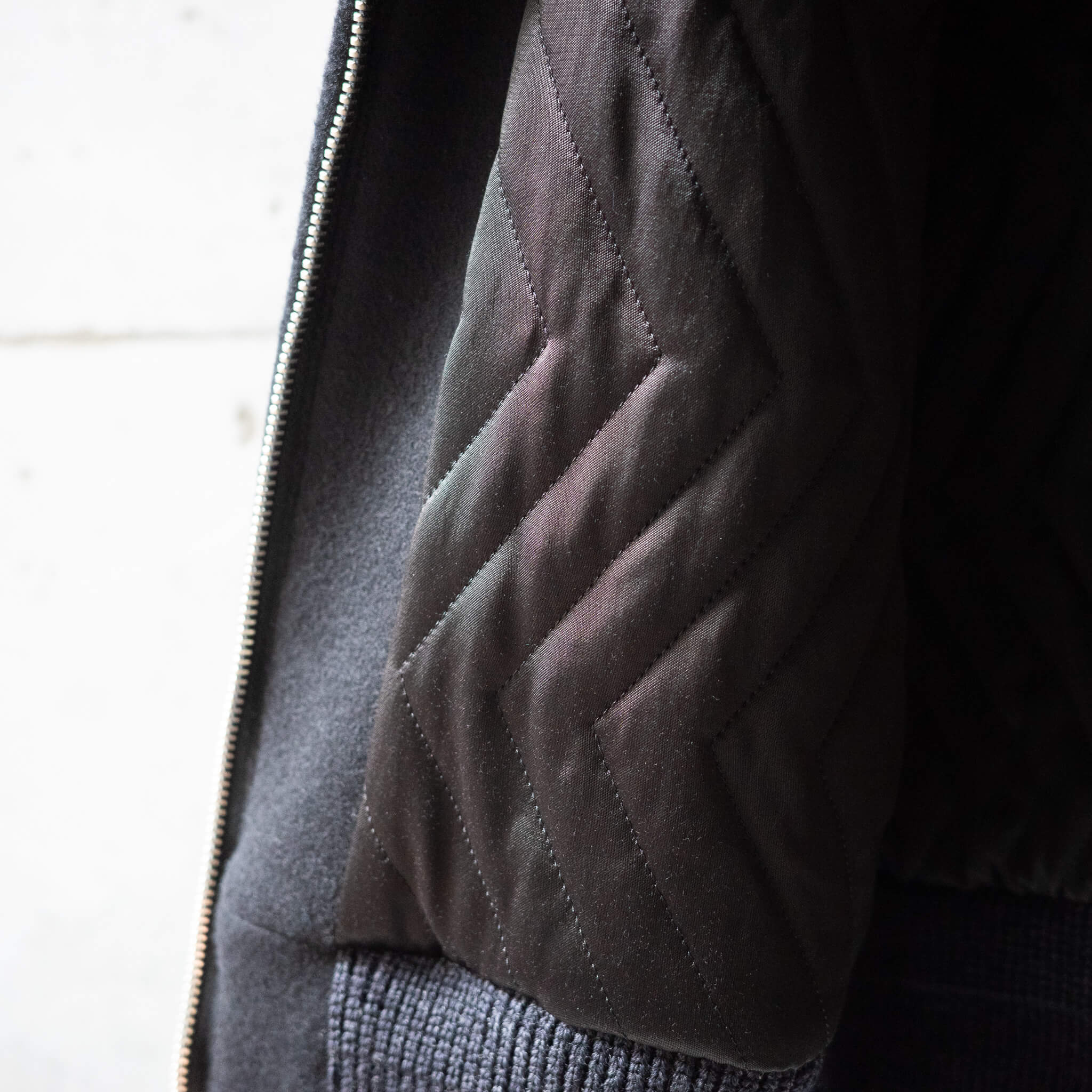 さらに裏地にはキルティングステッチを施し、中綿を配することで優れた防寒性を実現。このキルティングステッチ自体のデザインも魅力のひとつです。