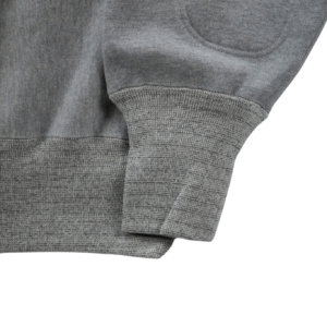 アームの分量に比例するように配されたビッグサイズのエルボーパッチが、デザインのアクセントとなっています。